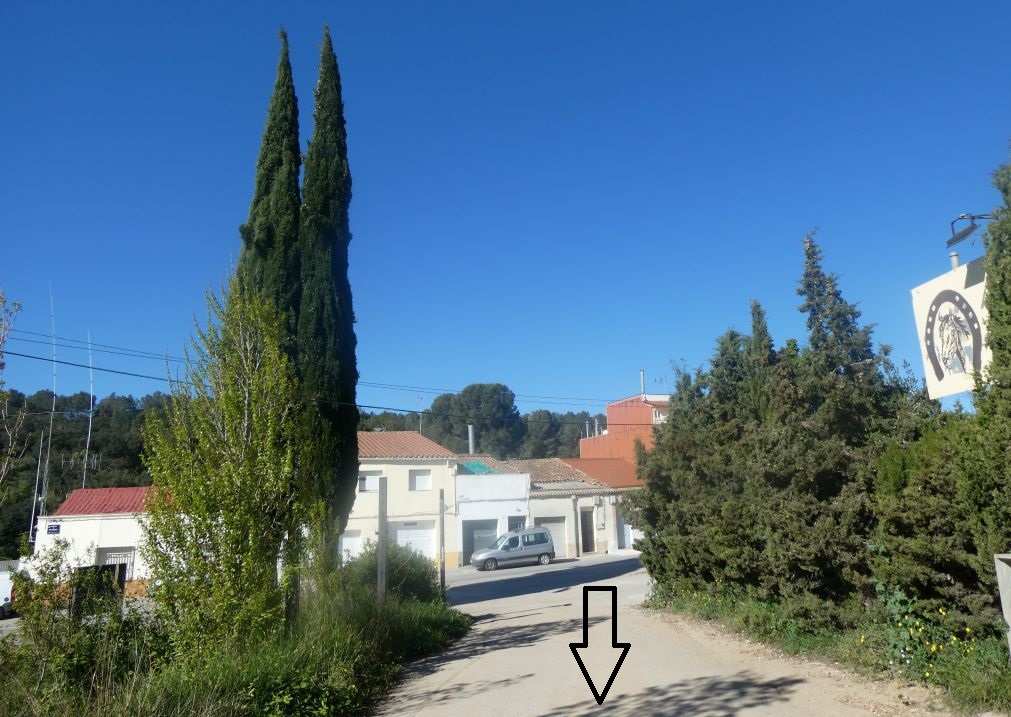 allí comença un camí rural, indicat per dos esvelts xiprers, i al costat esta el Restaurant Braseria La Hípica.
