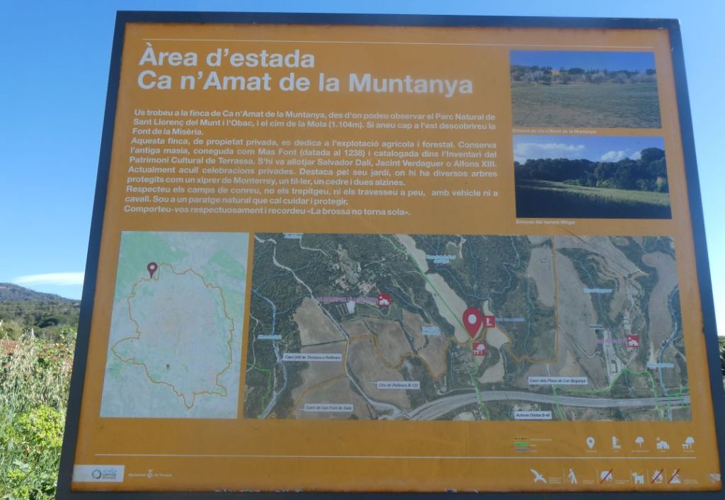 Cal seguir el camí i passar per sota de la B-40 i trobarem una àrea d’horts i fins l’Àrea d’Estada de can Amat de la Muntanya.