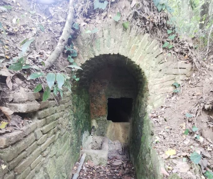 A l’entrada de la mateixa mina, a mà esquerra, queda la font, amb un tub de ferro galvanitzat que recull l’aigua