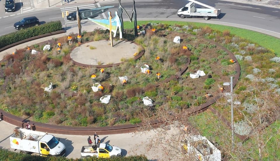 L’Ajuntament porta a terme l’enjardinament amb plantes que una vegada han arrelat floreixen.