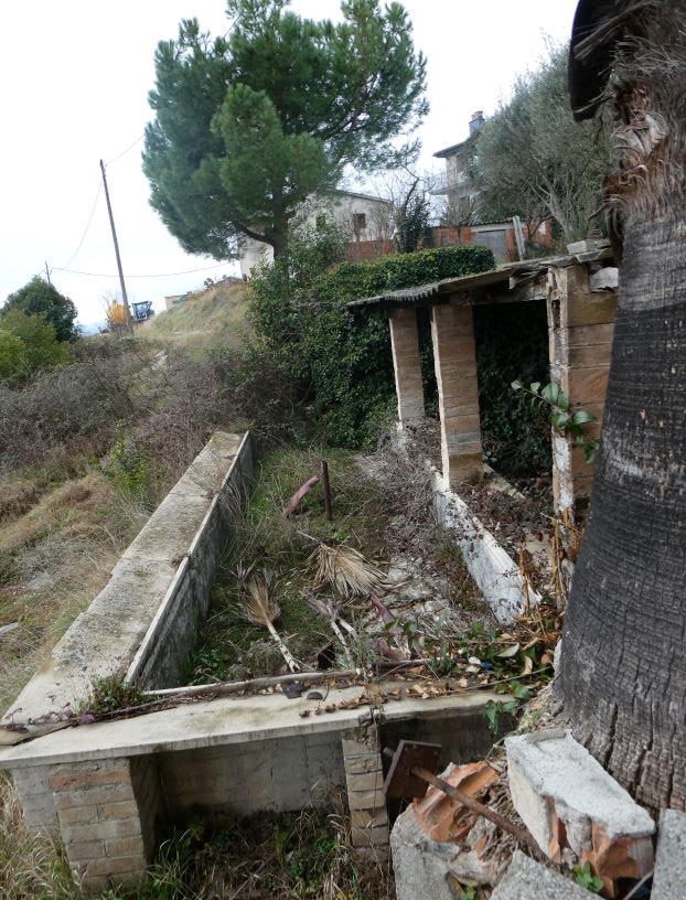 El safareig té, annex, un cobert amb teules i pilars d’obra per aixoplugar-se.