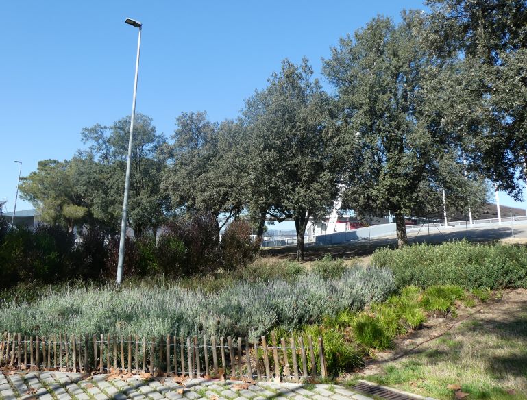Es un espai format per una petita zona enjardinada, amb arbres, com pins i alzines,