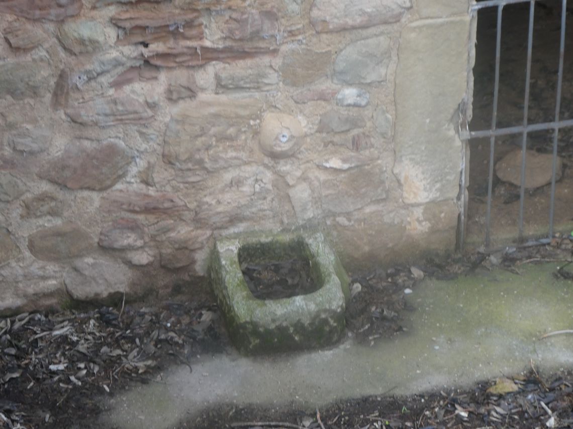 Però un canaló porta l’aigua fins l’exterior, on per un tub hi cau a una pica quadrada.