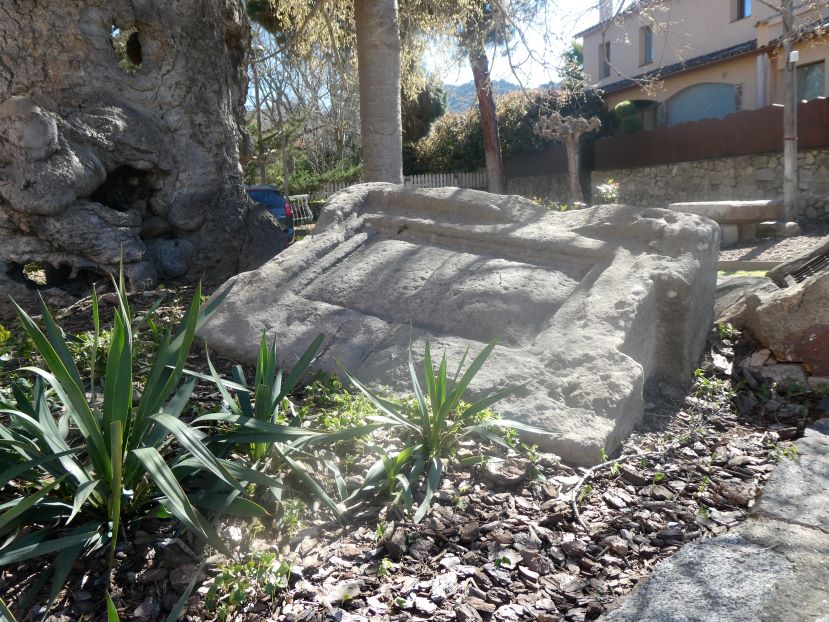 - Hi ha una Base de premsa de vi de cargol, feta de pedra granítica situada en el parterre d’un lledoner monumental, al centre mateix de la Plaça de les Glòries Catalanes. El parterre delimita la protecció del lledoner, construït amb pedra irregular unida amb morter i alçat. La base de premsa es troba en un costat i està posada amb una inclinació de 45º.