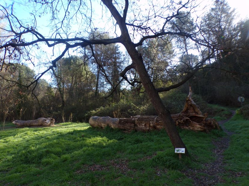Al seu costat, hi ha un antic tronc de Pi al terra,
