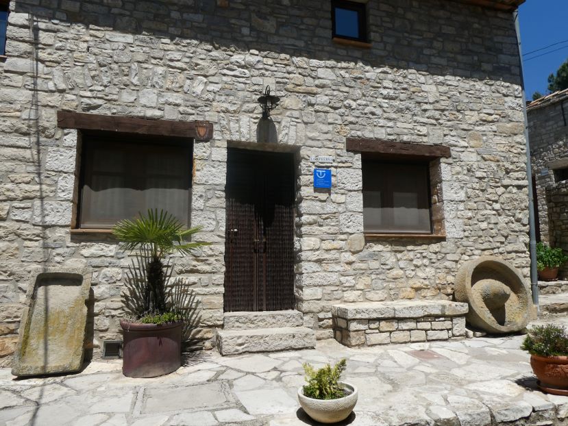 Disposa d’una taula i seient de fusta per poder fer un àpat.