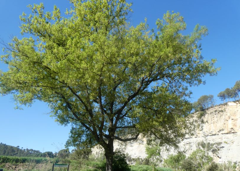 Es gran, amb un tronc gros i amb moltes branques.
