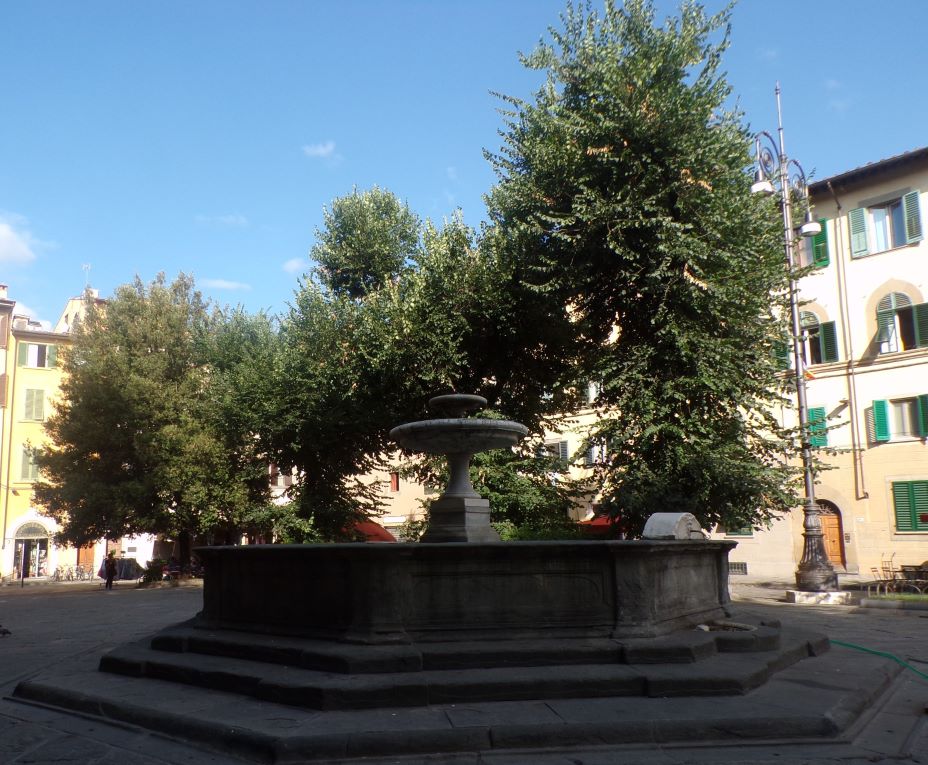 Se destacan edificios de origen renacentista, el Monumento a Cosimo Ridolfi, la Basílica del Santo Espíritu i la Fuente en el centro de la plaza.