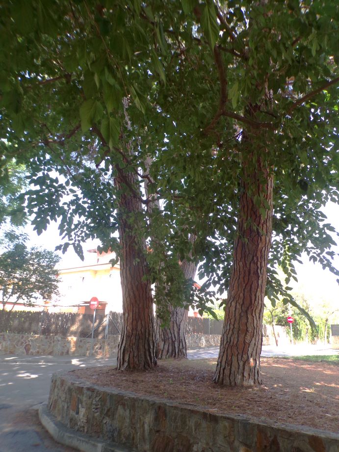 Es tracta de tres exemplars de pi pinyer. Com a particularitat cal mencionar que un dels tres pins compta amb tres troncs que comparteixen una mateixa base.