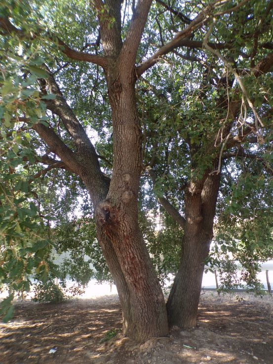 Es tracta d’un roure bessó, de dos braços, que tenia una alçada de 13 metres, l’any 2017.