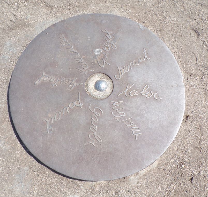 Al centre del conjunt hi ha una planxa de ferro amb la inscripció de tots els vents: gregal, llevant, xaloc, mig jorn, garbí, ponent, mestral i tramuntana.