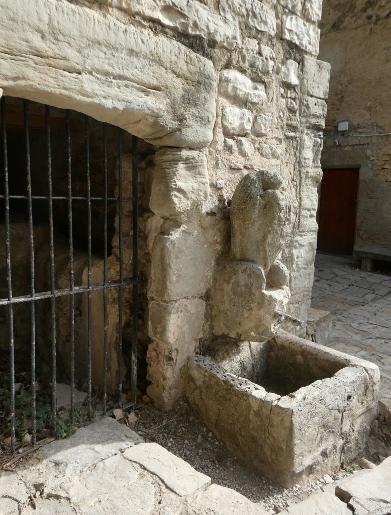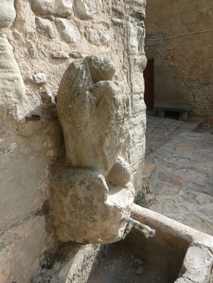 Font de pedra per on raja l’aigua que prové d’una surgència natural captada uns tres cents metres aigües amunt.