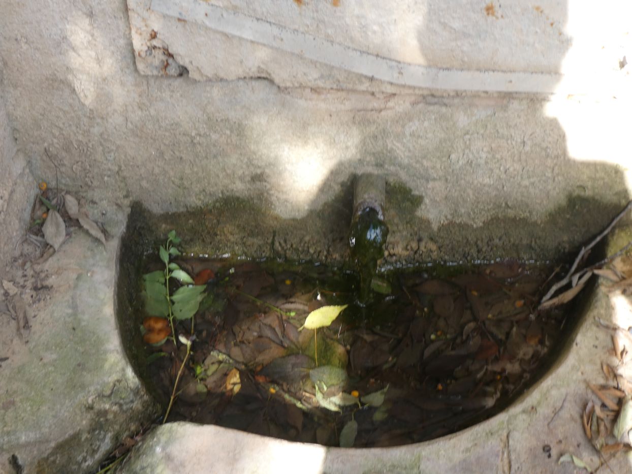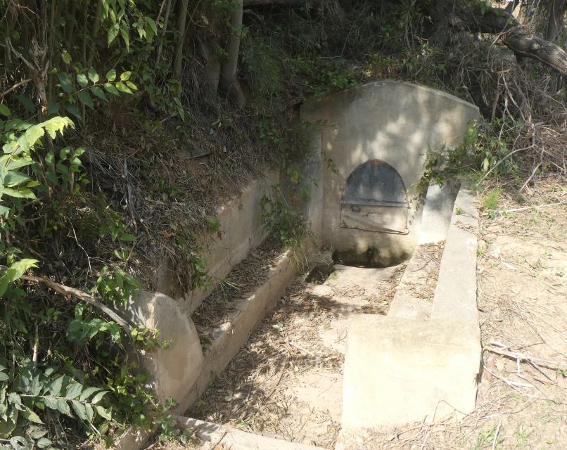 Font construïda a l’entorn d’un broll d’aigua, a manera de passadís fet amb rajols i dos bancs a banda i banda i,