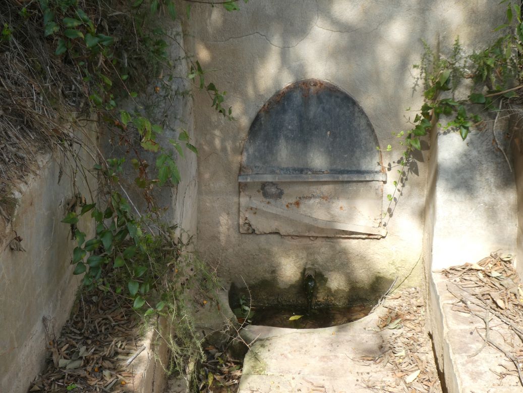 al fons, la font, amb un broc de ferro i una portella metàl·lica per accedir al seu interior.