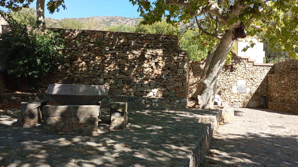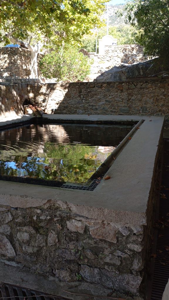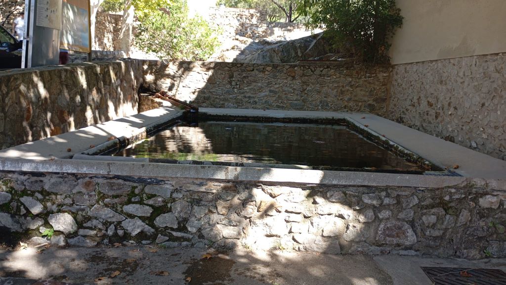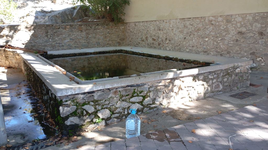 La deu raja i proveeix d’aigua a la bassa, probablement a través d’una canalització soterrada. Aquesta bassa, de forma irregular, es troba excavada a la roca i ha estat restaurada recentment. Des d’aquesta, l’aigua arriba fins a l’abeurador a través d’un tub descobert, subministrant alhora el safareig.