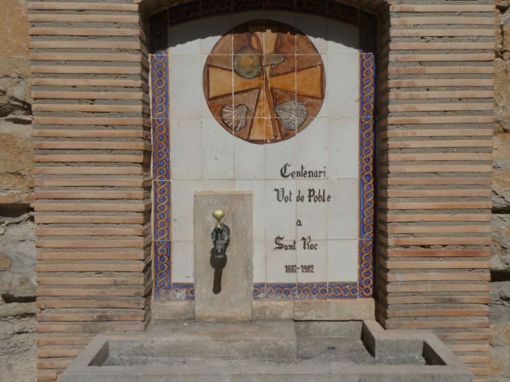 Adossada a la paret de l’església de Sant Pere, hi ha una font amb rajoles commemorativa al centenari, Vot de Poble a Sant Roc – 1882 a 1982.