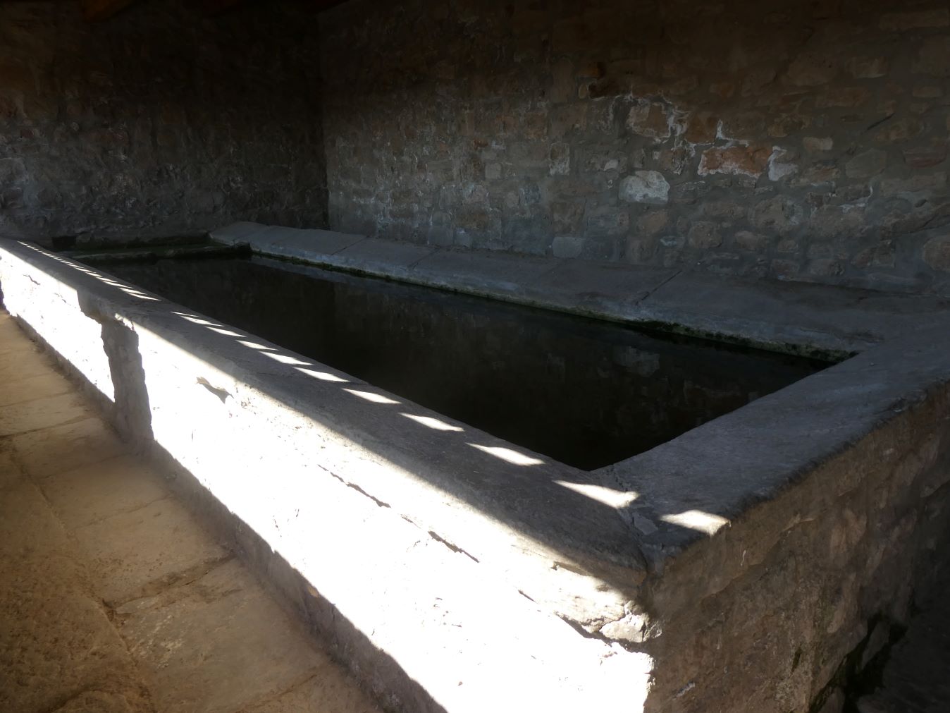 L’espai interior està pràcticament tot ocupat per la gran pica de pedra del safareig, de forma rectangular.