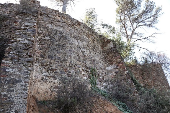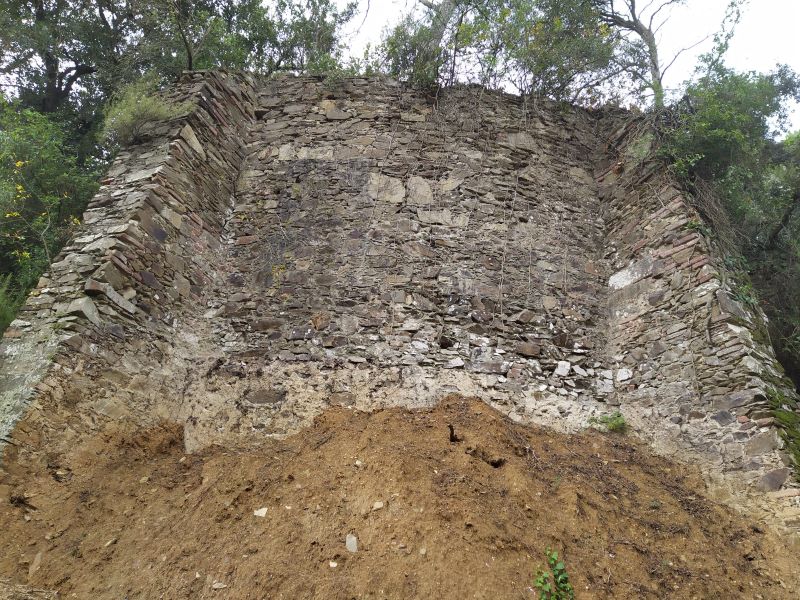 Els murs són de maçoneria de pedra rústica, i trobem també voltes de maó i grans lloses planes que cobreixen alguns sectors de l’edificació.