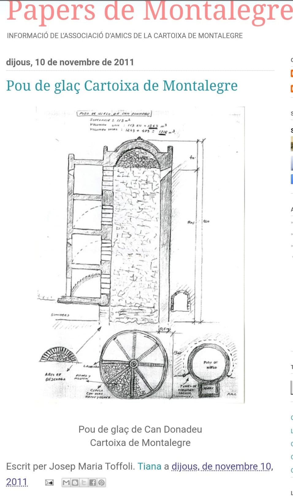 • «Per a treure el glaç se servien d’una mina oberta al pla dels fonaments, aquesta mina tenia un canaló que conduïa una aigua fresquíssima que sortia del pou.