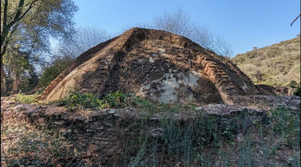 Té un diàmetre de 14 metres i una alçada de 21 metres. Està cobert per una cúpula de maons coberta de vegetació.