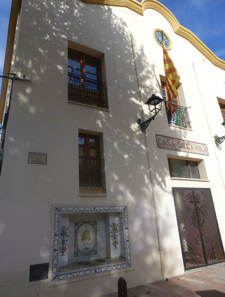Font urbana encastada a la façana de l’edifici de l’ajuntament.