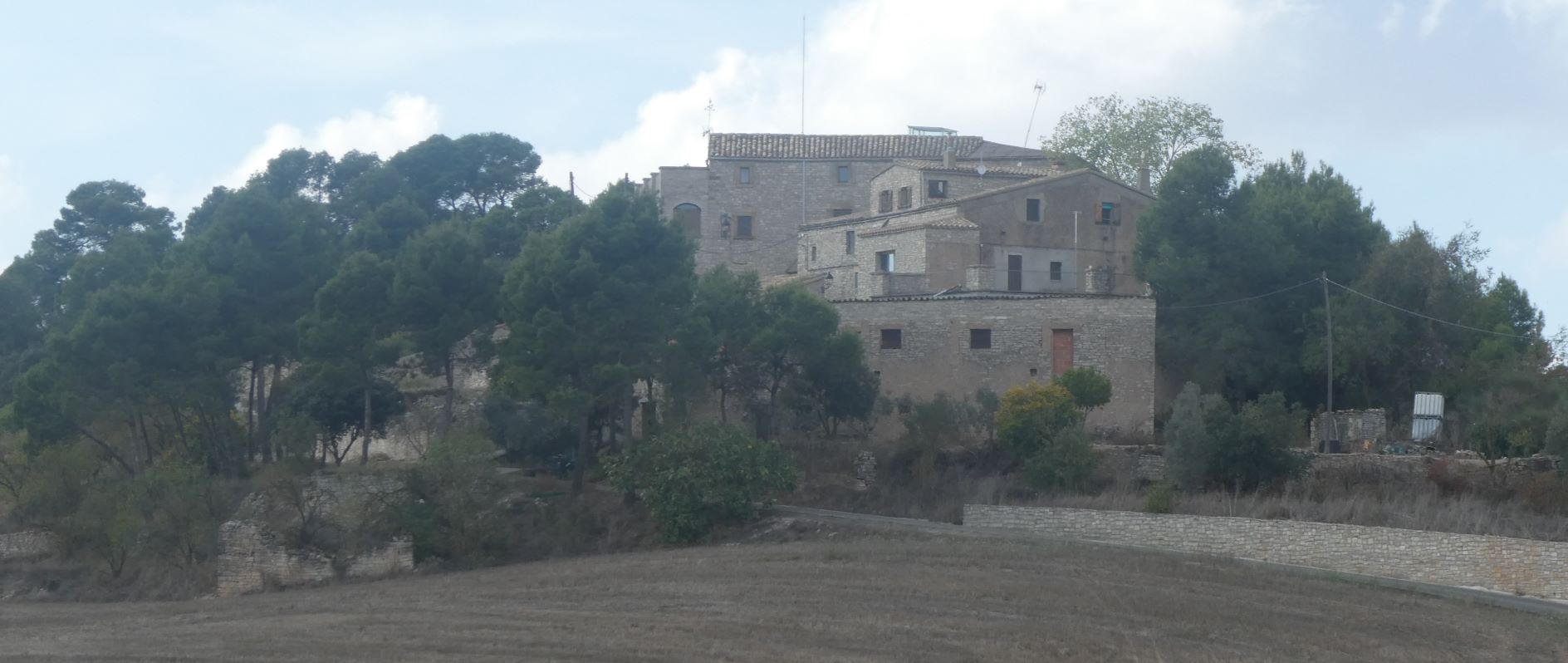 bastida sota el pla de Sant Salvador en una zona d’arbres i matolls, a pocs metres de la façana lateral de l’ermita de Sant Salvador.