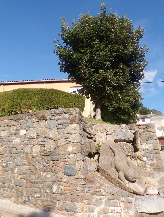 • La instal·lació de l’escultura es produeix l’any 1993 quan amb motiu de la pavimentació del c/ Mossèn Joan Aymerich i l’adequació dels murs de contenció del carrer, es va arranjar la zona enjardinada entorn el Local Cultural i la construcció del mur de contenció.
