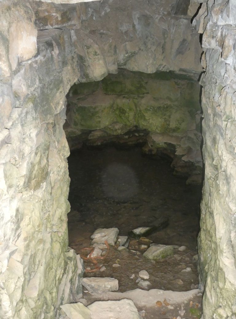 S’hi accedeix per un graó entre les parets de pedra irregulars.