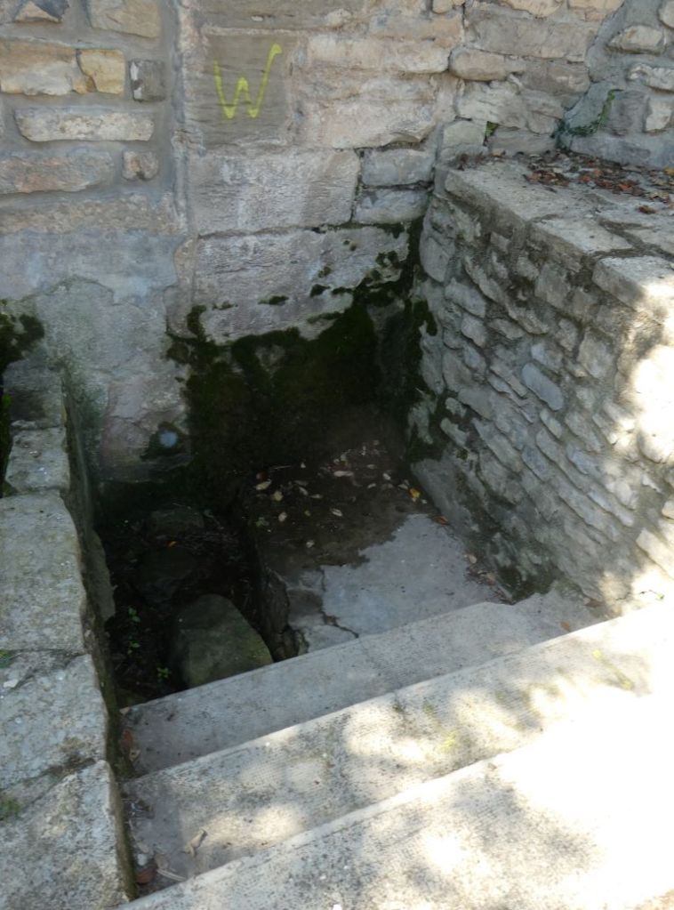 La segona ens cal baixar uns esglaons i de la paret surt l’aigua que va a parar a un canaló