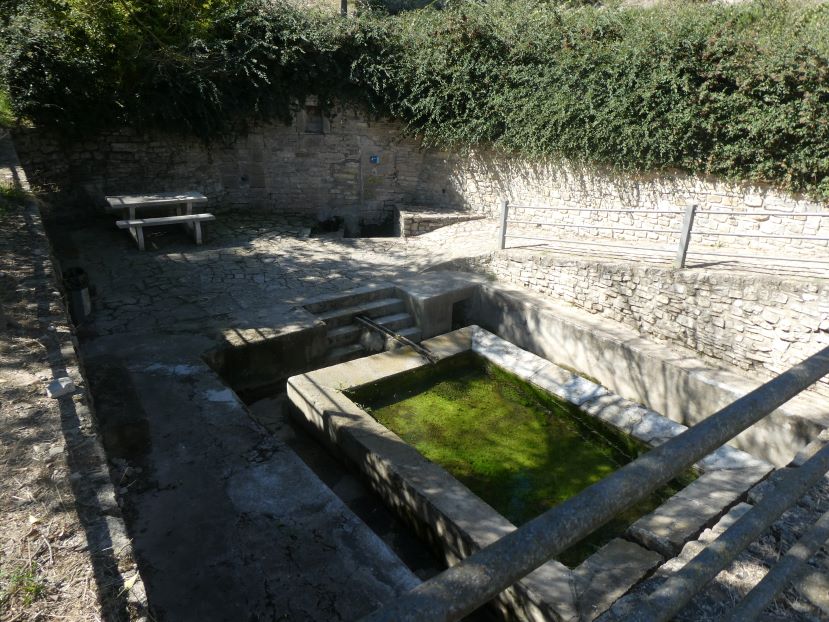 Hi han dues sortides d’aigua, una amb un doll abundant, que surt per un vell tub de ferro i cau a una pica on desguassa,