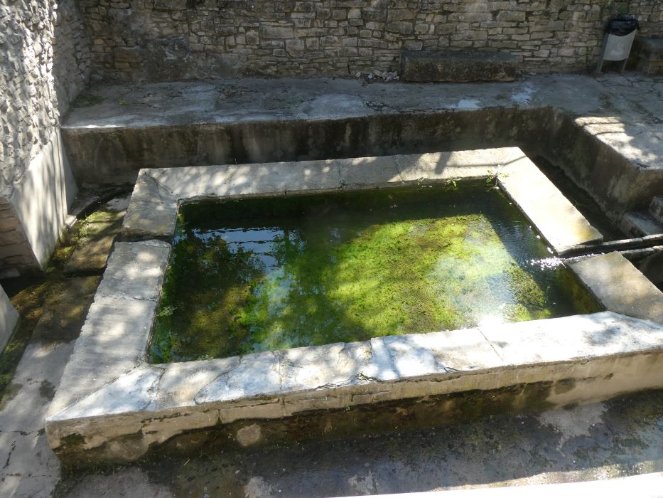 Hi han dues sortides d’aigua, una amb un doll abundant, que surt per un vell tub de ferro i cau a una pica on desguassa,