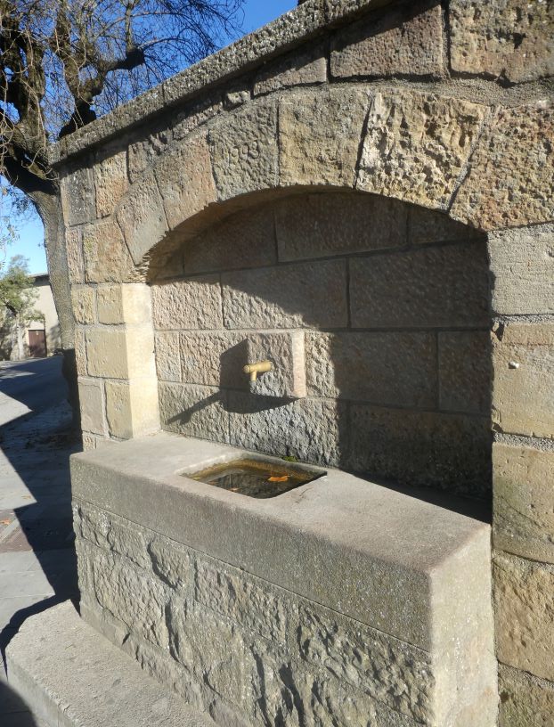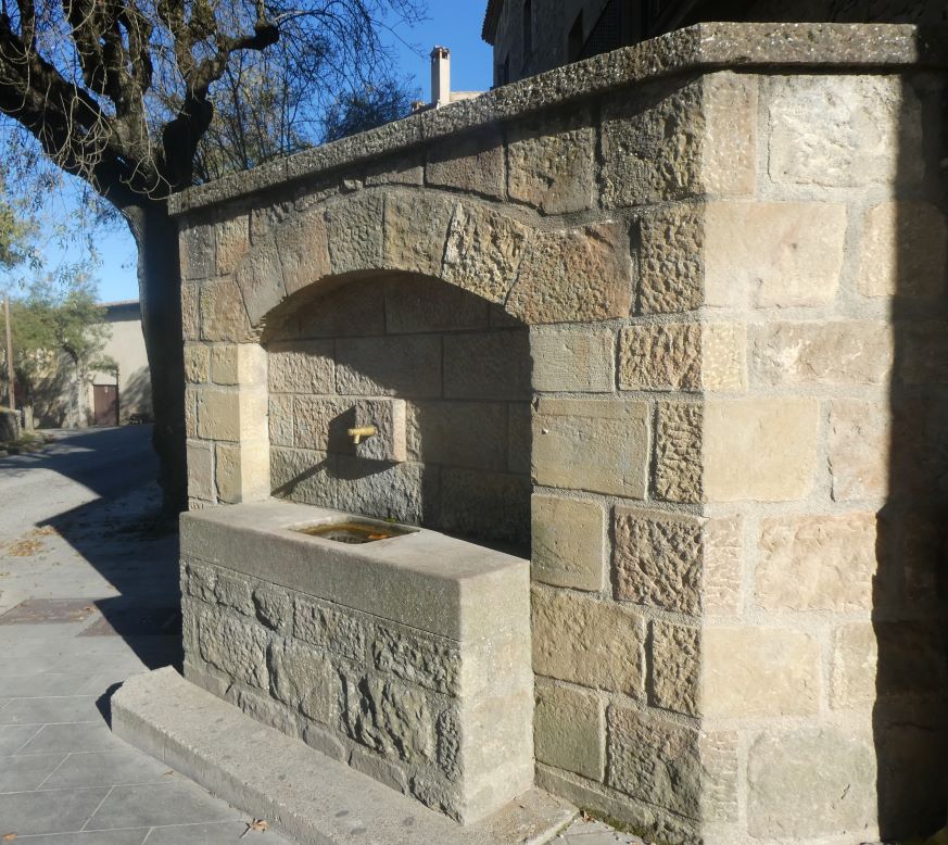 A prop del Portal del Castell i adossada a la paret del Safareig en el carrer de Vall Fred, esta la seva font.