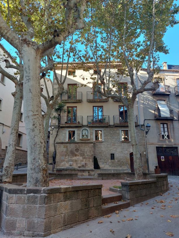 En la plaça hi han uns plàtans amb tronc destacats.
