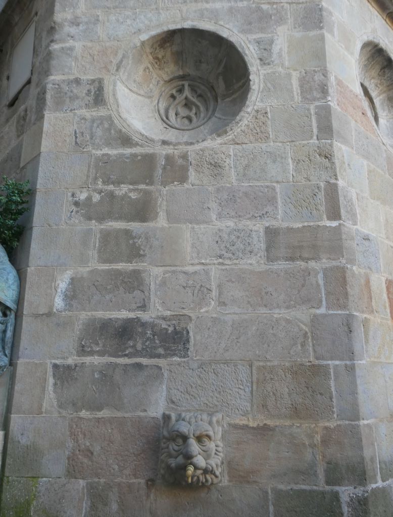 Així que al cantó del migdia de la plaça devia obrir-s’hi la gran portalada romànica del temple de Santa Maria. D’altra banda, el cantó de sol era clos per la façana de la Casa del Consell que deuria tenir portal i finestrals romànica.