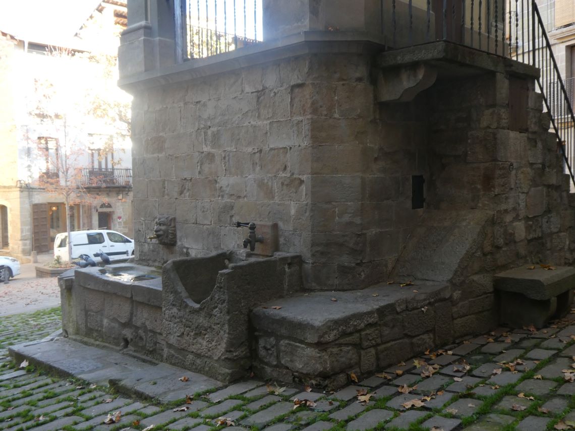 L’aigua que vessava de la font s’escolava cap al Riu Negre per un rec que baixava pel mig del carrer que surt del racó nord de la plaça i d’aquí el nom amb què encara actualment se’l coneix: el carrer de la Regata.