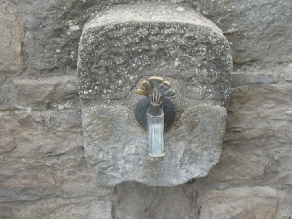 Finalment, un brollador obert a la part baixa la mateixa roca, permet la sortida de l’aigua que queda recollida en un tall rebaixat a la mateixa cinglera.
