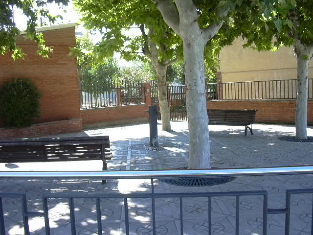 Font moderna, es una estructura metàl·lica amb una aixeta polsador, l’aigua cau a terra.