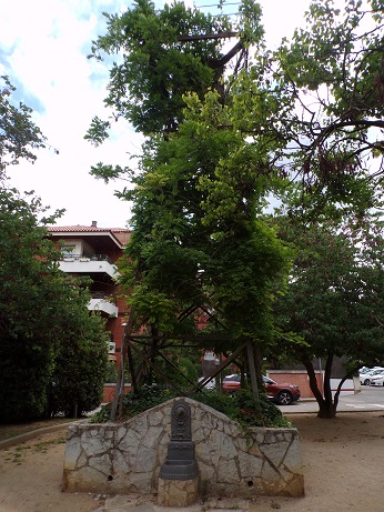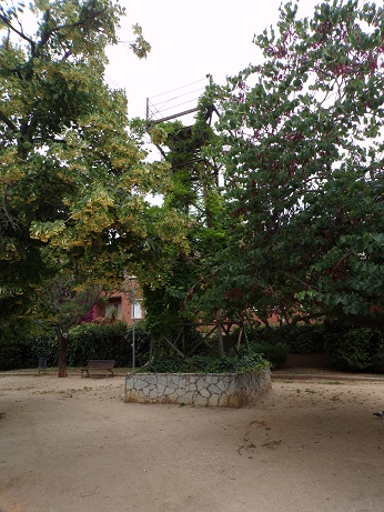 Tota l’estructura de la torre, esta envoltada tot l’any de vegetació trepadora, que queda molt be amb el conjunt enjardinat de la plaça.