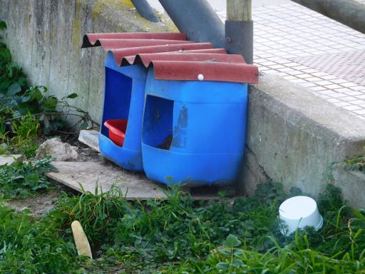 molta es la imaginació de la gent posant tot tipus de materials per fer un lloc on viure els gats, com petits armaris, bidons, caixons, caixes, sofàs, i així podríem fer una llarga llista…