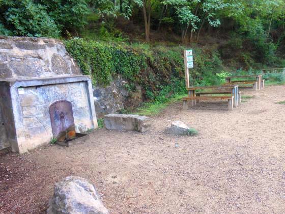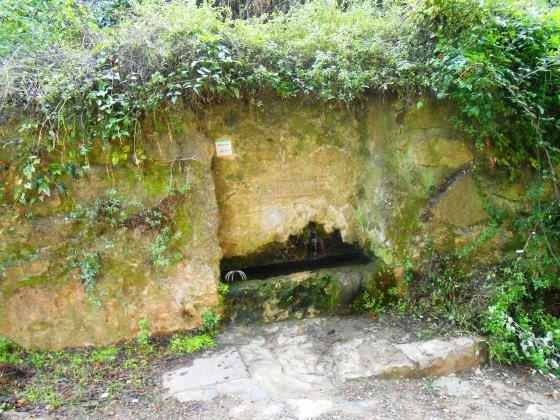 L’aigua va a parar a un nivell mes baix, on esta el camí de pujada des de Santa Maria, en la paret de la dreta trobarem un reduït i antic abeurador. (anomenat també, Font Falsa)