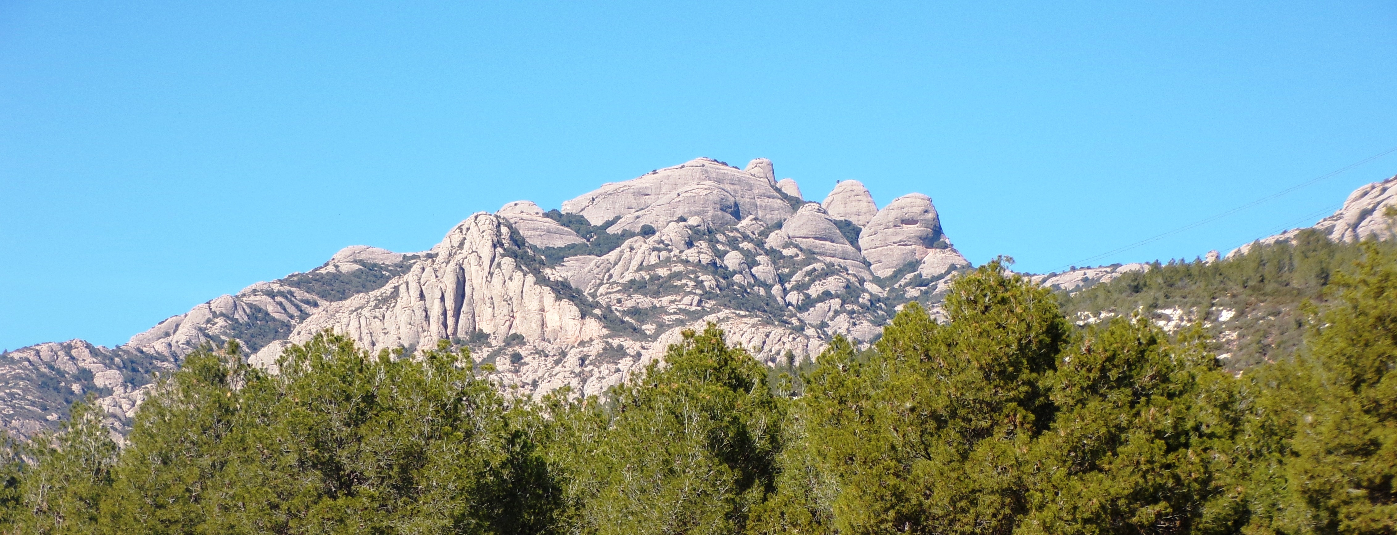 És un massís de formes singulars que s’enlaira bruscament a l’oest del riu Llobregat fins als 1.237,9 m del cim de Sant Jeroni, sent aquest pic el lloc més alt de l’Anoia i del Bages.