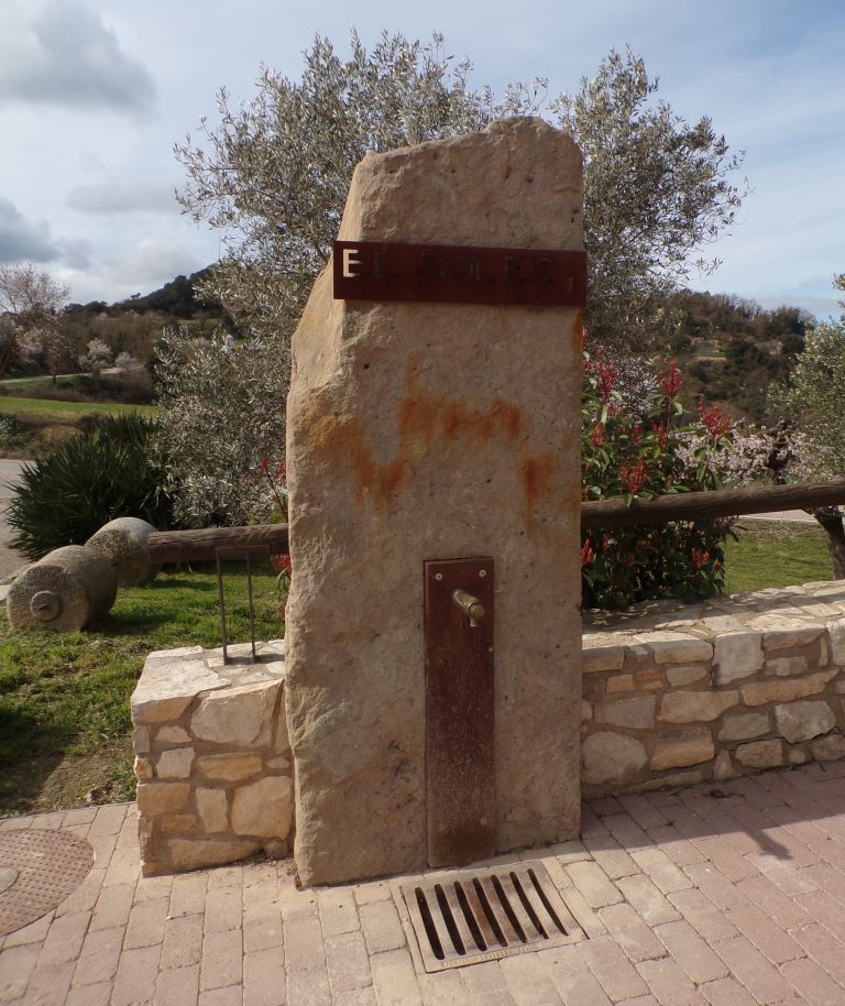 Esta format per una llesca de roca o pedra, on al centre hi ha una aixeta polsador.