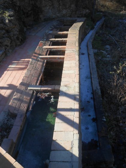 Durant l’estada a la font i safareigs, vaig veure diversa gent que recollien aigua amb grans garrafes de plàstic, pel consum i per cuinar, dient que es una aigua excel·lent.