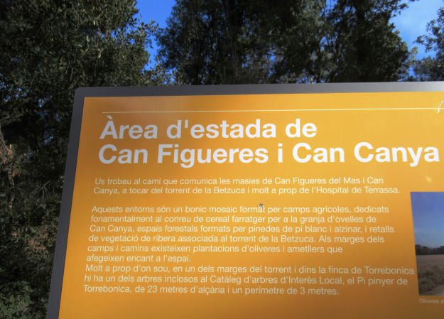cal continuar direcció a la Finca de Torrebonica, deixant a mà esquerra el camí d’accés a Can Figueres del Mas, a uns 200 metres trobareu a la dreta una pista de terra que baixa al torrent de la Betzuca, una vegada que el passeu