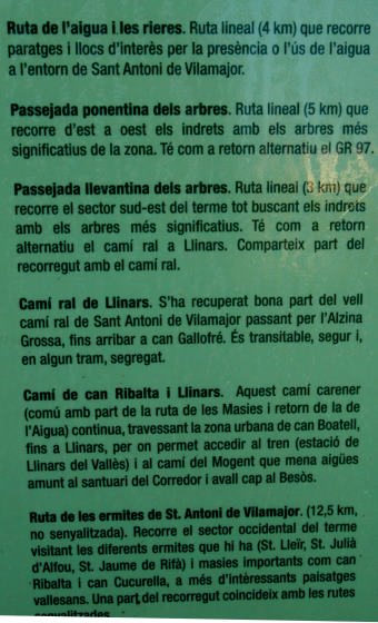 També, disposa dels cartells indicatius de passejada i d’itineraris per les rodalies de Sant Antoni de Vilamajor.