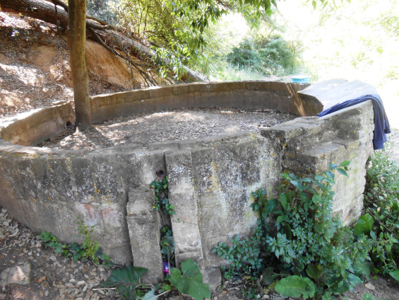 Seguim, fins arribar a l’antic i circular Safareig del Torrent de Can Domènec, des de fa molts anys no arriba aigua, esta ple de terra i inclòs hi ha crescut un arbre dintre seu.