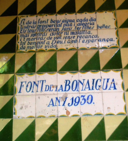 i seguirem per entre mig d’uns xalets, baixarem al fons del torrent on esta la Font de la Bonaigua, que data de 1930,