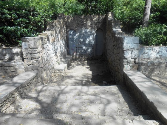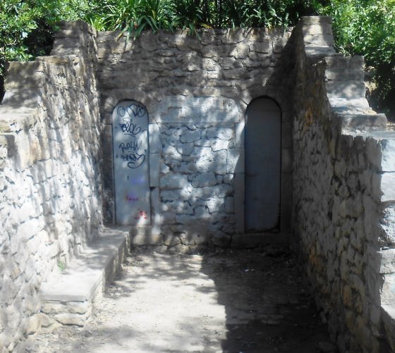 Per anar a un espai mes planer situat en una part superior, calia pujar uns 13 esglaons. Estava sota l’ombra de varis plàtans centenaris.