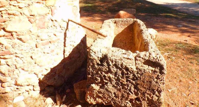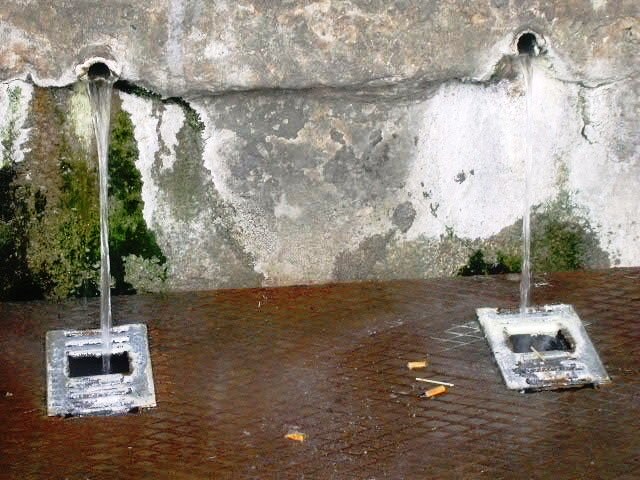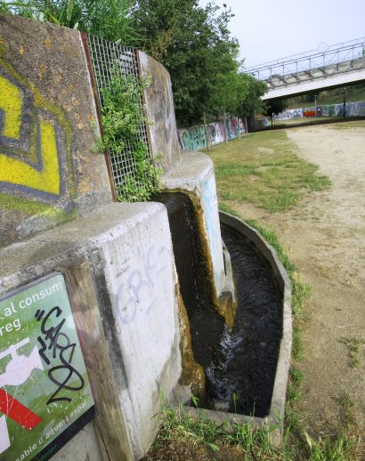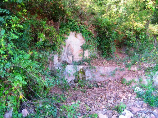 Del pedestal, hi ha una aixeta polsador, l’aigua cau a una antiga pica rodona de pedra.