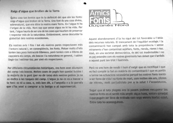 Va ser una iniciativa dels ajuntaments del Lluçanès, i varen editar el Calendari de l’any 2004, amb un recull de les fonts mes representatives de cada Municipi.